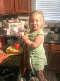 My daughter busy in the kitchen. |