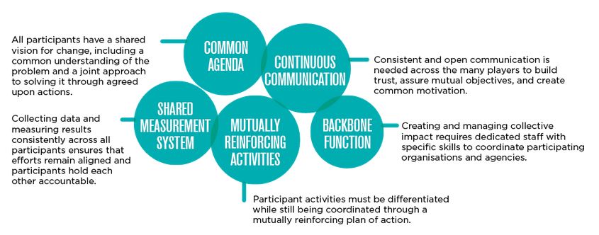 case study was how above all else, common agenda is the MOST IMPORTANT part of collective impact organizations. Their common agenda consists of 5 key points: they had to work comprehensively, you need to relook at the measure and move their thinking from poverty alleviation to poverty reduction (less poor not better poor), you don’t solve problems but harness assets (bring together the best in a community and focus it towards a common problem, it needed to be a multi-sector process (for example, not just volunteer or government, and this couldn’t be about solving things, it had to be about learning together. Each partner organization shared the common vision and implement it into the context of their day-to-day work, leading to the sustainable success they have had over the years.